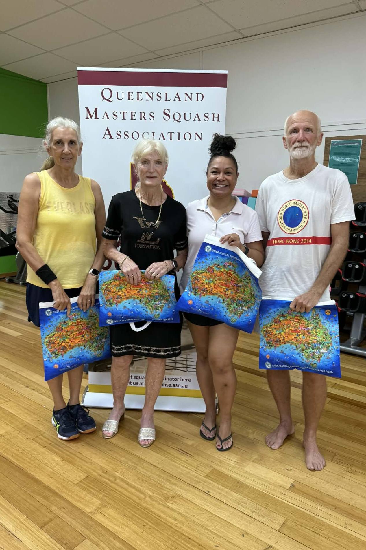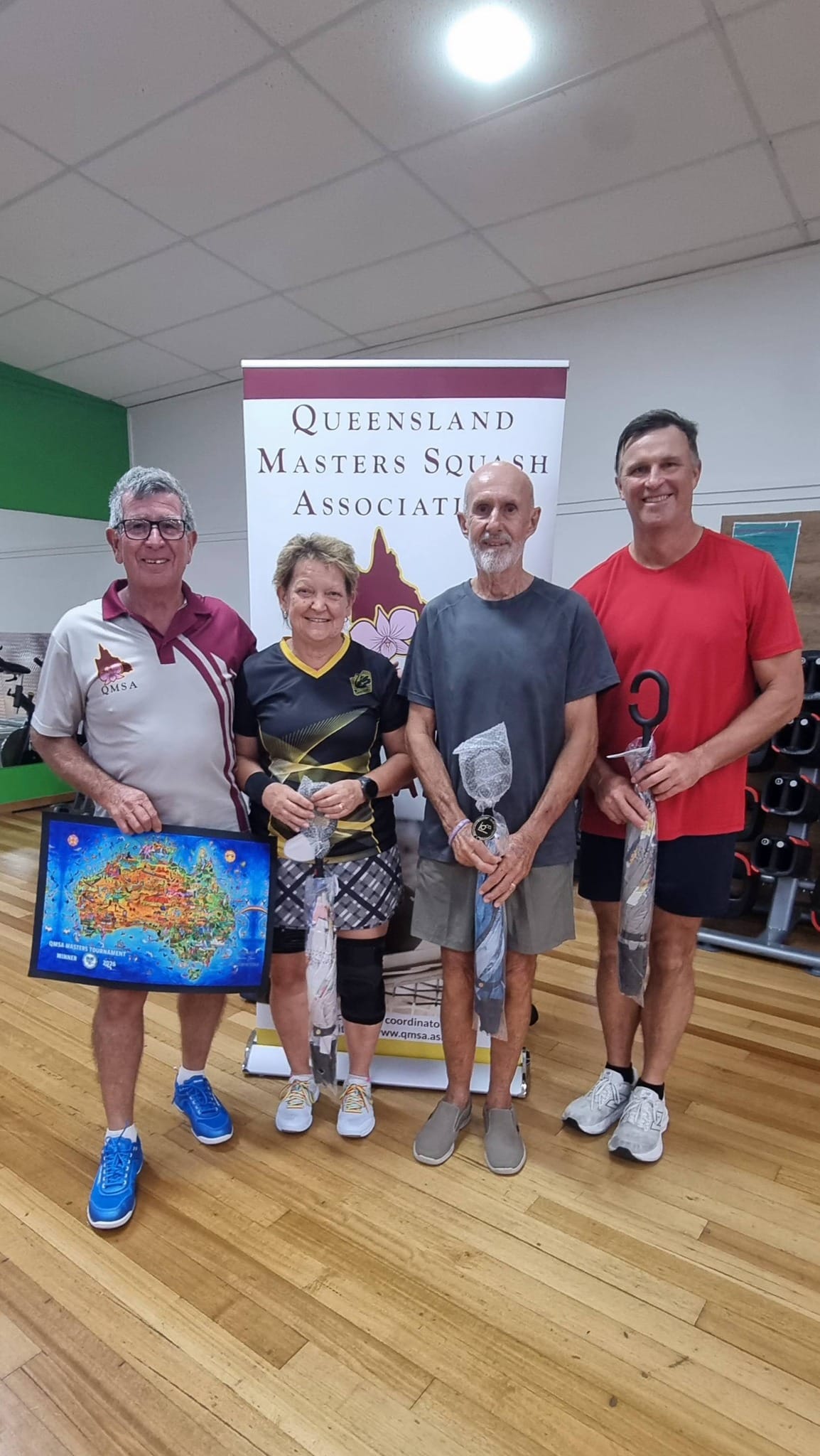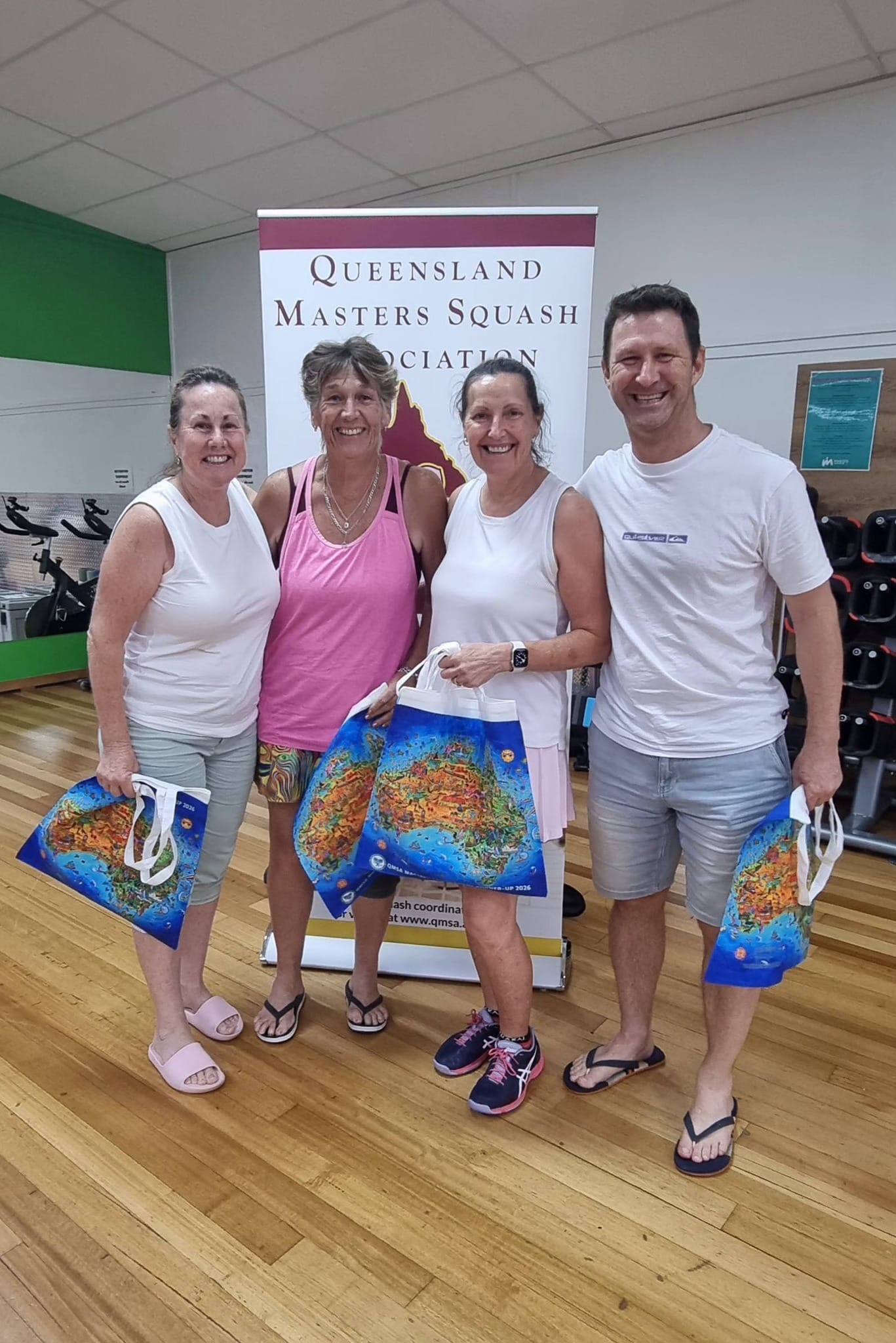 Welcome to the Queensland Masters Squash Association (QMSA) sanctioned tournament at Hervey Bay. This is one of the most eagerly awaited tournaments in our calendar. It is always a fun event, put together thoughtfully by Kathy for our members, and supported by our QMSA tournament team. Please see the poster for details including the Saturday Evening Dinner.