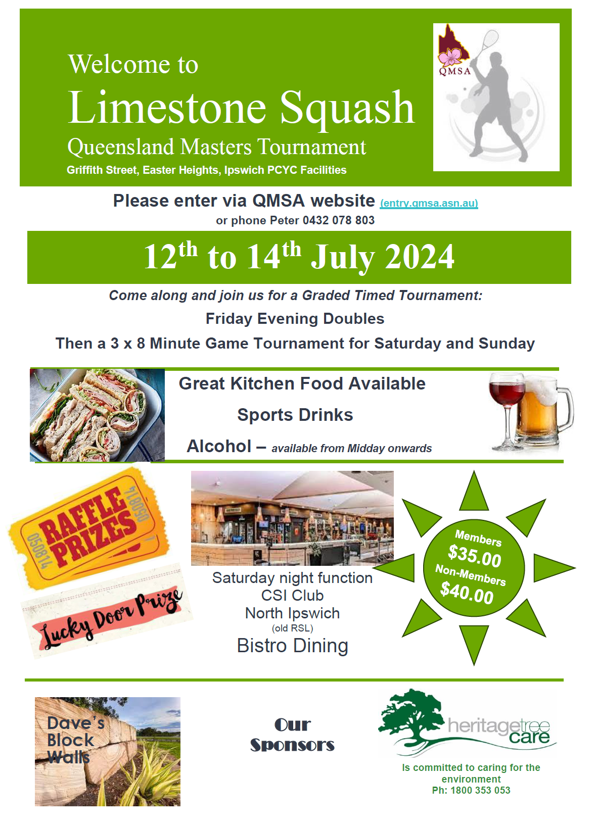 Welcome to the Queensland Masters Squash Association (QMSA) sanctioned tournament at Limestone Squash Centre.