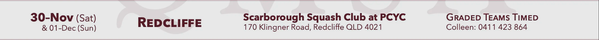 Welcome to the Queensland Masters Squash Association (QMSA) sanctioned tournament at PCYC Redcliffe.