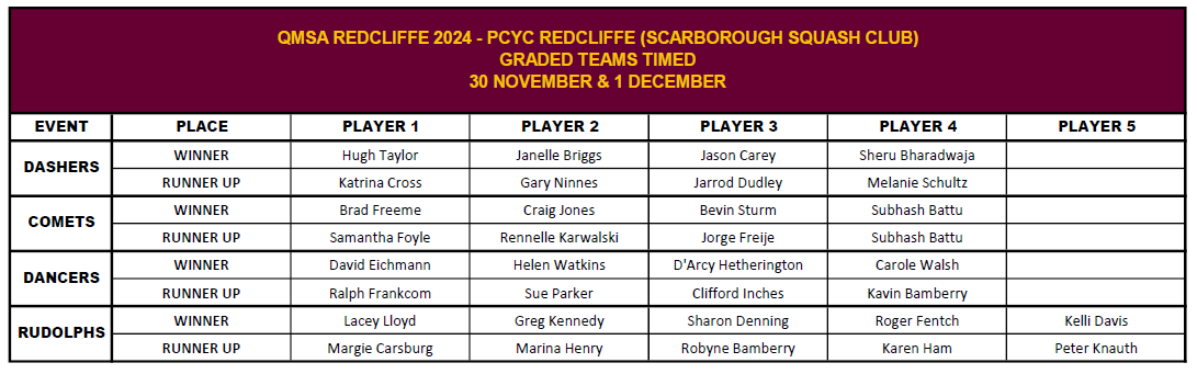 Follow this page for the QMSA sanctioned Graded Teams tournament at PCYC Redcliffe on Saturday 30th November and Sunday 1st of December 2024.