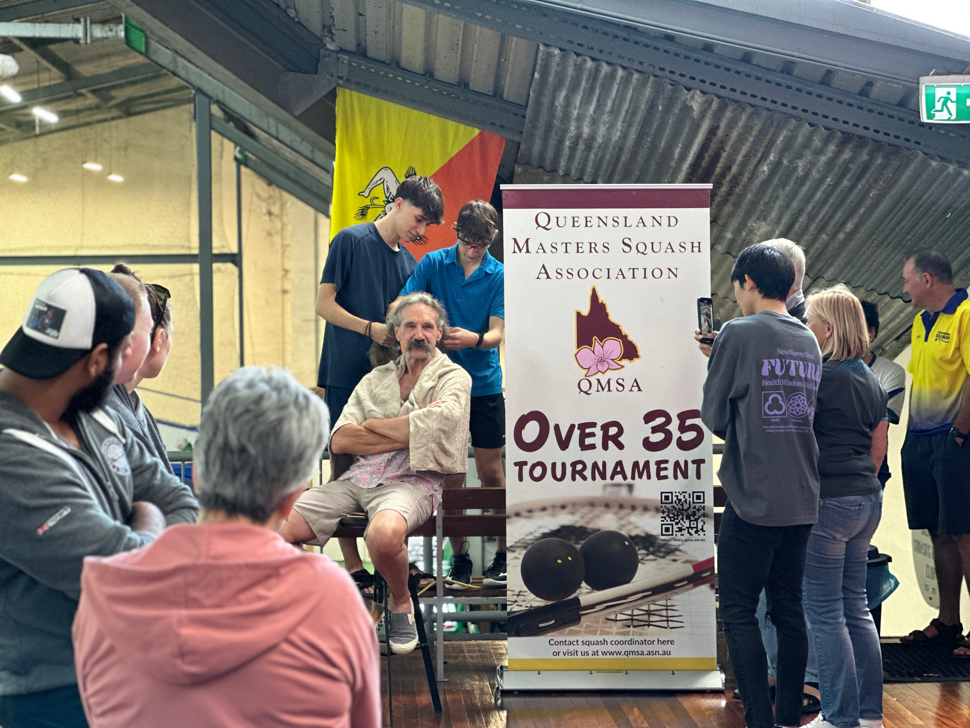 Peter Vogler kindly agreed to a hair chop for charity, raising funds for the Children Make A Wish Foundation and junior squash.